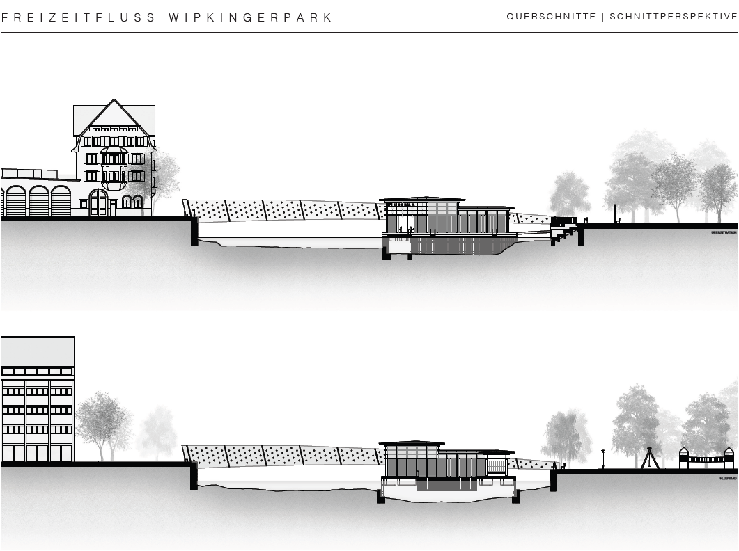 The river pool is planned on the Wipkinger side of the river. The system is concieved as an extension of what already exists.